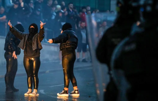 At about half past eight, crowds were arriving in the area, families the very young to the very old, but it was really groups of young men with hoodies on tracksuits wearing masks who were gathering weaponry and throwing it at the police in almost a performative way, many of them filming themselves, streaming stuff on social media at the same time.
