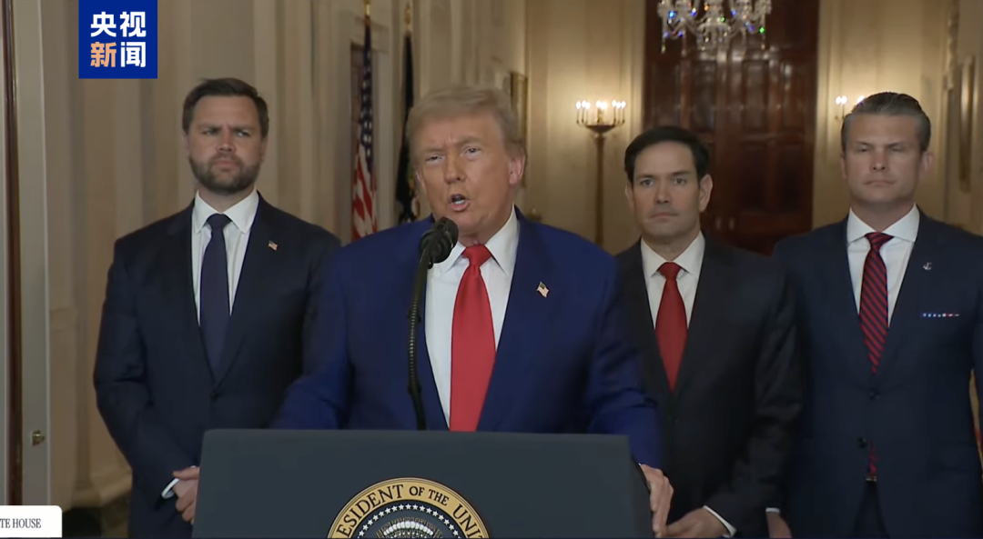 特朗普在讲话中称:“今晚,我可以向全世界报告,这次打击是一次巨大的军事成功。伊朗关键的核浓缩设施已被彻底摧毁。”这是他自空袭行动执行后的首次公开表态。