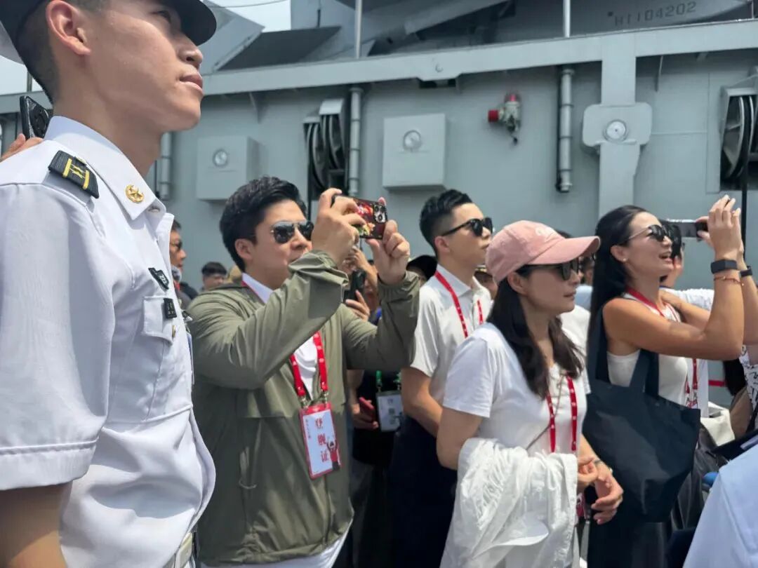 Guo Jingjing, who experienced firearm handling drills aboard the carrier, shared the public's enthusiasm. "The Shandong's visit is incredibly popular," she said. "Many who couldn't get tickets still found ways to catch a glimpse, whether from nearby bridges or other boats." She described the growing excitement as their ferry approached the massive vessel: "Everyone became more thrilled and particularly moved as we got closer."
