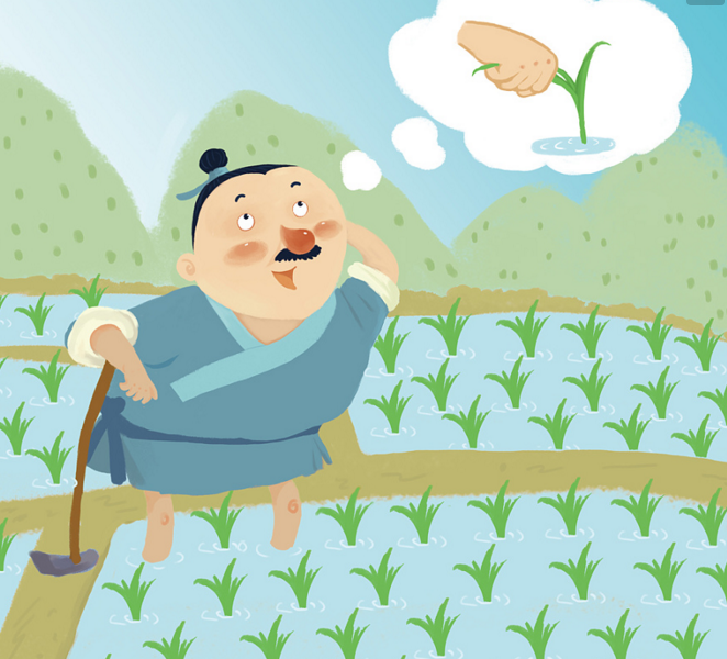 古时候有个人,希望自己田里的禾苗长的快点,天天到田边去看。