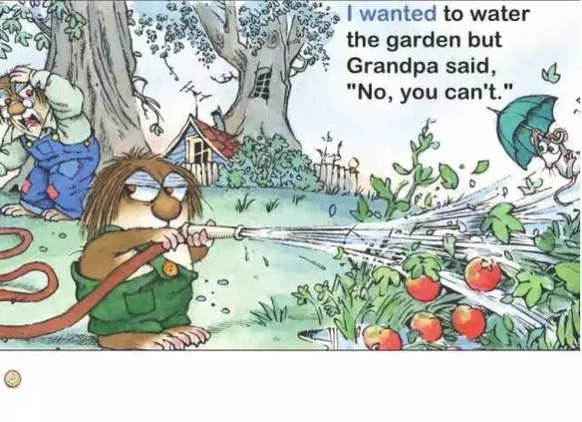 我想给花园浇水但是爷爷说,“不行,你不能这么做。”