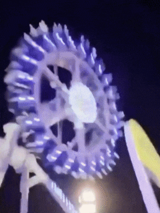 Video of the incident shows the ride with "360 degrees" written atop it swinging back and forth before the arm with the spinning wheel carrying passengers snapped off the frame of the ride.