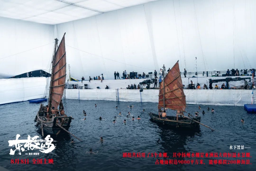 《东极岛》的拍摄,是位于扬州的高科技恒温水景棚,占地达9000平方米,目前为亚洲最大规模。剧组辗转5个深度与功能各异的水棚,精心搭建16处水下置景。拍摄前的准备工作更堪称繁复,历经水下摄影机、威亚、动作、逆流器、光线与置景安全等测试,涉及提前走戏、调度测试等多项环节。