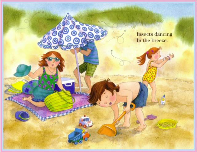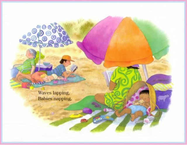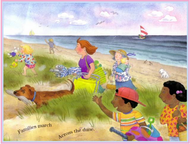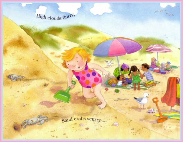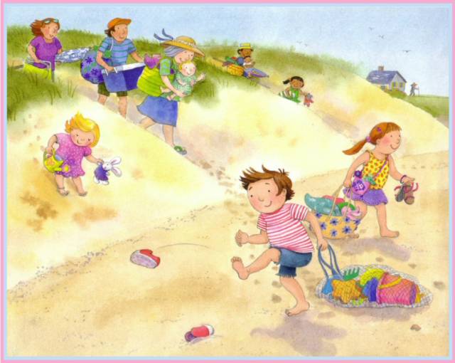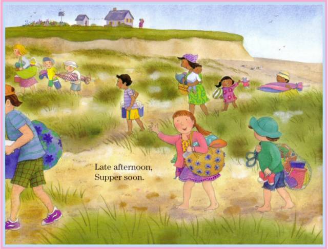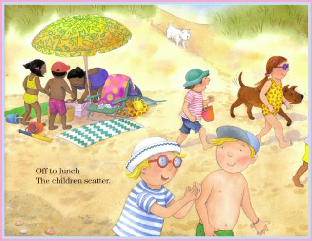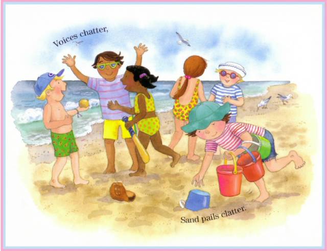 Sand pails clatter.