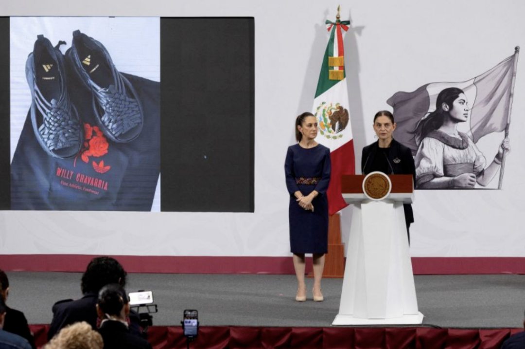 President Claudia Sheinbaum of Mexico displayed an image of a pair of Adidas Oaxaca Slip-Ons at a news conference on Friday and said that Adidas and other companies were "usurping the creativity" of indigenous communities.