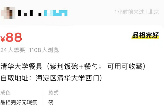 Other listings were also spotted, including a "Tsinghua University dining plate" priced at 35 yuan. As of Sunday, the bowl-and-spoon set had garnered more than 1,000 views and 24 users had marked it as "wanted".