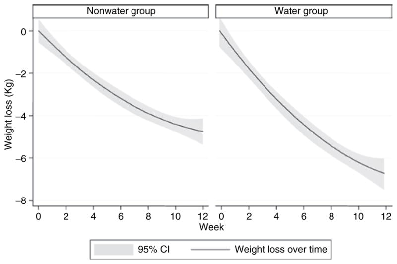 喝水组和非水组从基线到第 12 周的差异