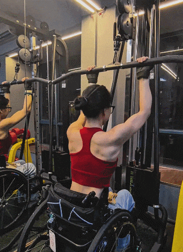 I started working out again around the Chinese New Year this year. Using a wheelchair is simply a different way of moving. I loved fitness before, and that hasn't changed.