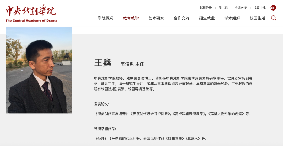 Public records show Wang is a professor with a doctorate in theatre directing. He has held several academic and administrative posts and has long taught theatre performance and directing.