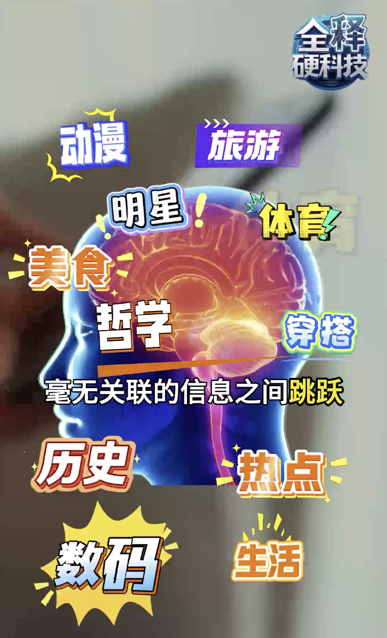 刷短视频时,可能大脑刚沉浸在“搞笑视频”的画面里,下一秒就被跳到“历史知识点”,再下一秒又变成“美食教程”。这种短时间里的高频切换,比持续做一件事更累人。而且大脑一旦习惯了这种快速、无规律的切换节奏,再去看电影、听课、看书这种连贯的内容,就会变得特别难以集中注意力。