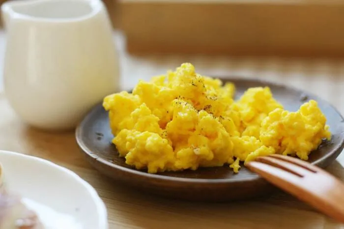 国内炒蛋与国外炒蛋最大的不同在于油的用量和加热的程度,外国人做炒蛋时加热的速度很慢且稍微断生就会出锅。