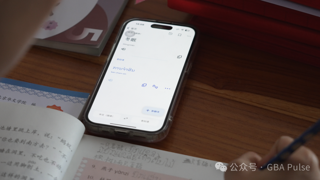 张萍在备课时需要用手机翻译老挝语