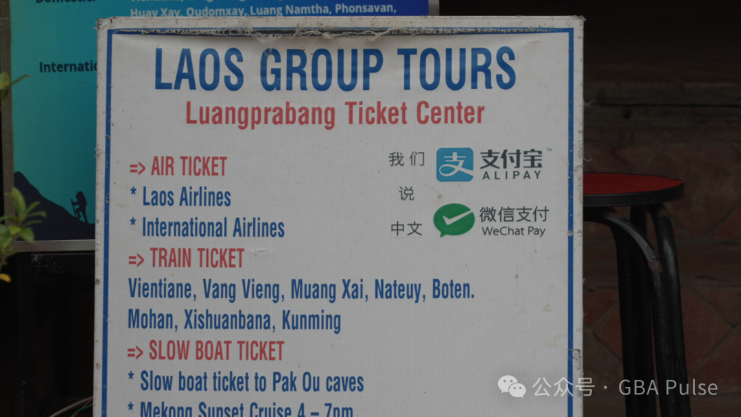 在老挝,有商家摆出带有中文的招牌