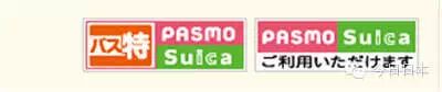 PASMO(IC卡)在公交车上使用时可使用PASMO或Suica等交通IC卡的公交车辆,均贴有如图所示的标签。