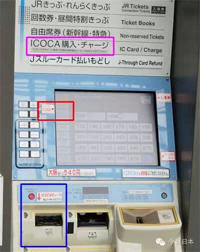 有些比较旧的机器,是把ICOCA的购买按钮是透过营幕显示,如下图红色框框
