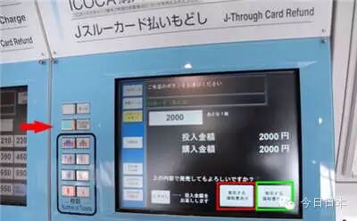 4)ICOCA卡售价第一次购买¥2000,含储值金¥1500,¥500是卡片押金。5)ICOCA卡储值最少一千,可储值金额分别为:1000、2000、3000、5000、10000。但是,一张卡片内最多只能有2万日元。6)ICOCA卡购买方法有些机器会把购买ICOCA的按钮,直接设计在外面,这种就直接投入2000日元后,再选择该按钮(红色箭头) 即可。然后它会询问你是否需要收据,红色框框是要收据,绿色框框是不用收据。