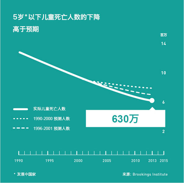 对我来说,判断世界是否进步最好的方式,就是看看有多少孩子的死亡其实可以避免。如今,能活到 5 岁的孩子,比以往任何时代都要多。到今年为止,已经连续 42 年,儿童的死亡率在不断下降,这个数字不止是在持续下降,下降速度也出人意料地迅速。《经济学人》杂志今年 9 月发表的一篇文章称:自 2001 年以来,我们已经挽救了 1 360 万孩子的生命。不难想像,这是世界进步的标志。