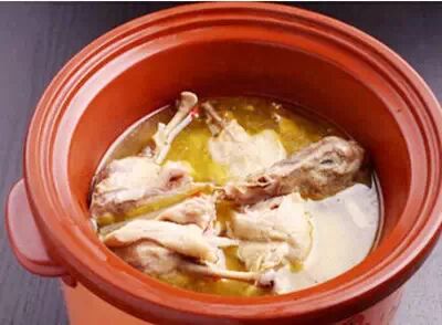 做法: 1、鸭子剖膛去内脏、足、舌、鸭臊、及翅尖的一段,用水洗净,控去水分。然后,在烧开的汤内把鸭子煮一下,将血水去掉,捞出后用水冲洗,并尽量把水分控干。 2、用盐在鸭身上揉搓一遍,脊背朝上盛入坛子内腌一会,并放上料酒、葱、姜、胡椒粉和清汤,再将坛子封严上屉,用旺火开水蒸23小时,取出,揭去封闭汤子的盖,将乳油撇去,加入味精并调好咸淡即成。