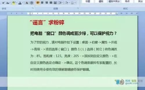 除了防蓝光眼镜,网络上还流传着许多关于保护眼睛的方法,比如下面这个“豆沙绿的桌面”。