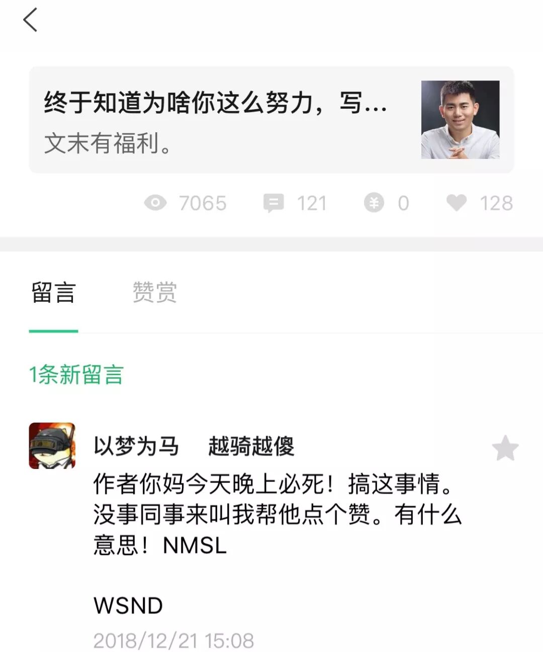 做公众号三年,内心柔软了,因为遇见了太多的爱。内心也变硬了,因为经常遇到下图中的留言,不管你做什么,总有人骂你。