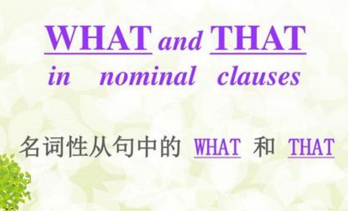 That引导名词性从句只起连接作用,在从句中不作任何成分,无意义,在宾语从句通常省略,但在主语从句、表语从句和同位语从句中均不能省略;what除引导从句外,还在从句中作成分,意为“所……的(东西)”,在含义上等于“名词+that”。如: